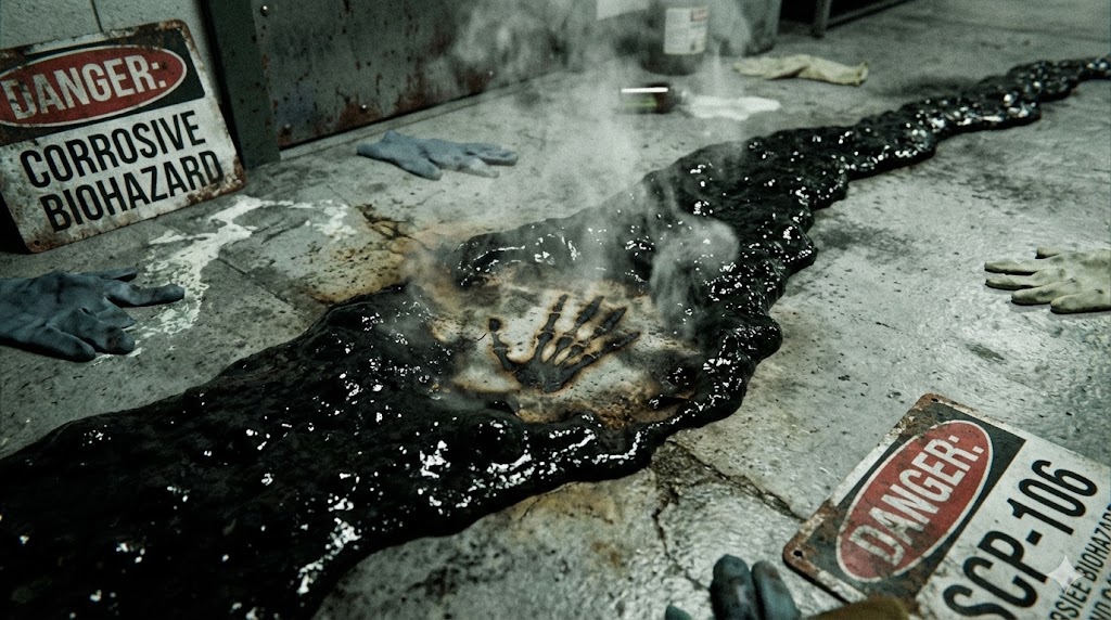 SCP-106の異常性の核心は、その体表から絶えず分泌される**「黒い粘液」**にある。これは単なる体液ではなく、極めて攻撃的な性質を持つ異常物質である。