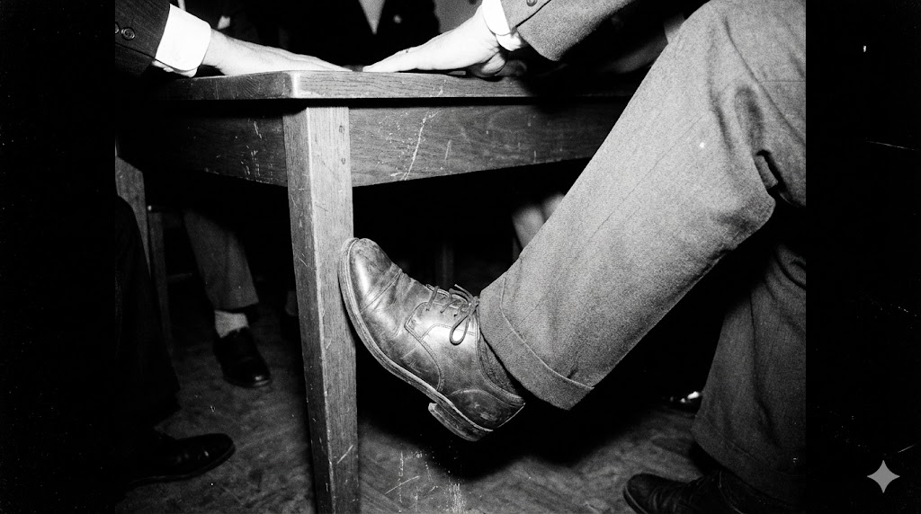 • 足と膝の使用: 参加者の注意が盤面に集中している隙に、靴を脱いだ足の爪先や、膝をテーブルの下に入れて持ち上げる手法。
