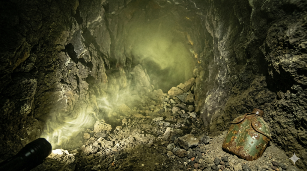 地下壕の内部環境は、現代の基準では想像を絶する。硫黄島の地熱は場所によっては50度から60度を超え、空気は硫化水素と二酸化硫黄で汚染されている 。この過酷な閉鎖空間で、かつての兵士たちは数ヶ月間にわたり、爆撃を避け、渇きと戦いながら、地下生活を強行した。そこには、未だに生活の跡や、銃を抱えたまま白骨化した遺骸がそのままの形で残されている。